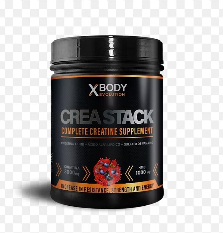 Crea Stack es un suplemento deportivo que ayuda a incrementar la fuerza y la resistencia durante la actividad física. Está formulado con creatina, HMB, ácido alfa lipoico y sulfato de vanadio. Se ha demostrado que la creatina aumenta el rendimiento físico durante ejercicios repetidos de corta duración y con alta intensidad. Incrementa la resistencia durante el entrenamiento. Se han documentado crecimientos de hasta el 20% de la masa muscular luego de la suplementación con creatina. El HMB es una sustancia que naturalmente se produce en el organismo, ayuda disminuir el daño en los músculos durante el ejercicio físico, así como también a protejer las proteínas musculares. Promueve el aumento de la masa magra y también el incremento de la resistencia en el entrenamiento. Este compuesto se ha visto involucrado en una mejora de la función del sistema inmune, e incluso también mejoras en la salud, como por ejemplo en la disminución del colesterol LDL. El ácido alfa lipoico (LA) es una molécula que ayuda a evitar el estrés oxidativo. Durante el trabajo muscular se producen una gran cantidad de radicales libres, por lo que el efecto antioxidante del LA permite proteger las células de los mismos. Recientemente se ha comenzado a utilizar el sulfato de vanadio como suplemento, ya que el mismo tiene efectos similares a la insulina, provocando así el transporte de glucosa y aminoácidos hacia las mitocondrias de la célula, ayudándolas a tener más energía.