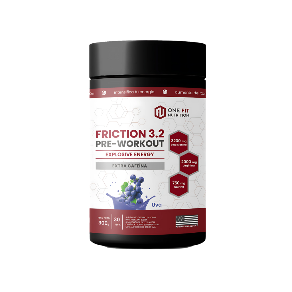 Nuestro Pre-Entreno Friction 3.2 es un suplemento deportivo que se consume antes de entrenar y se utiliza para aumentar la energía, resistencia y concentración durante los entrenamientos, mejorando el rendimiento y consiguiendo mejores resultados.